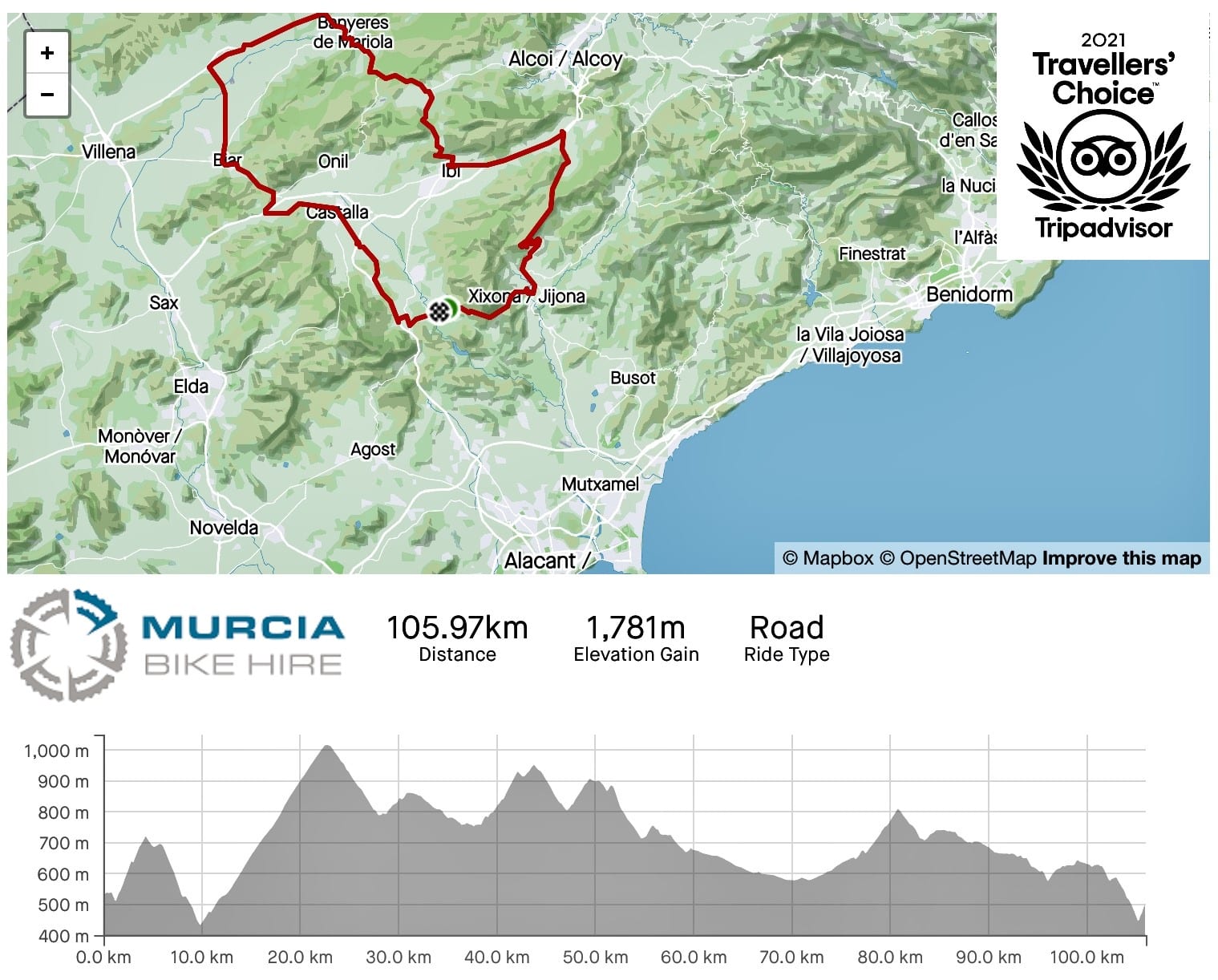 • All Murcia Bike Hire bikes include compact 50/34 T gearing – perfect for sustained climbs.
