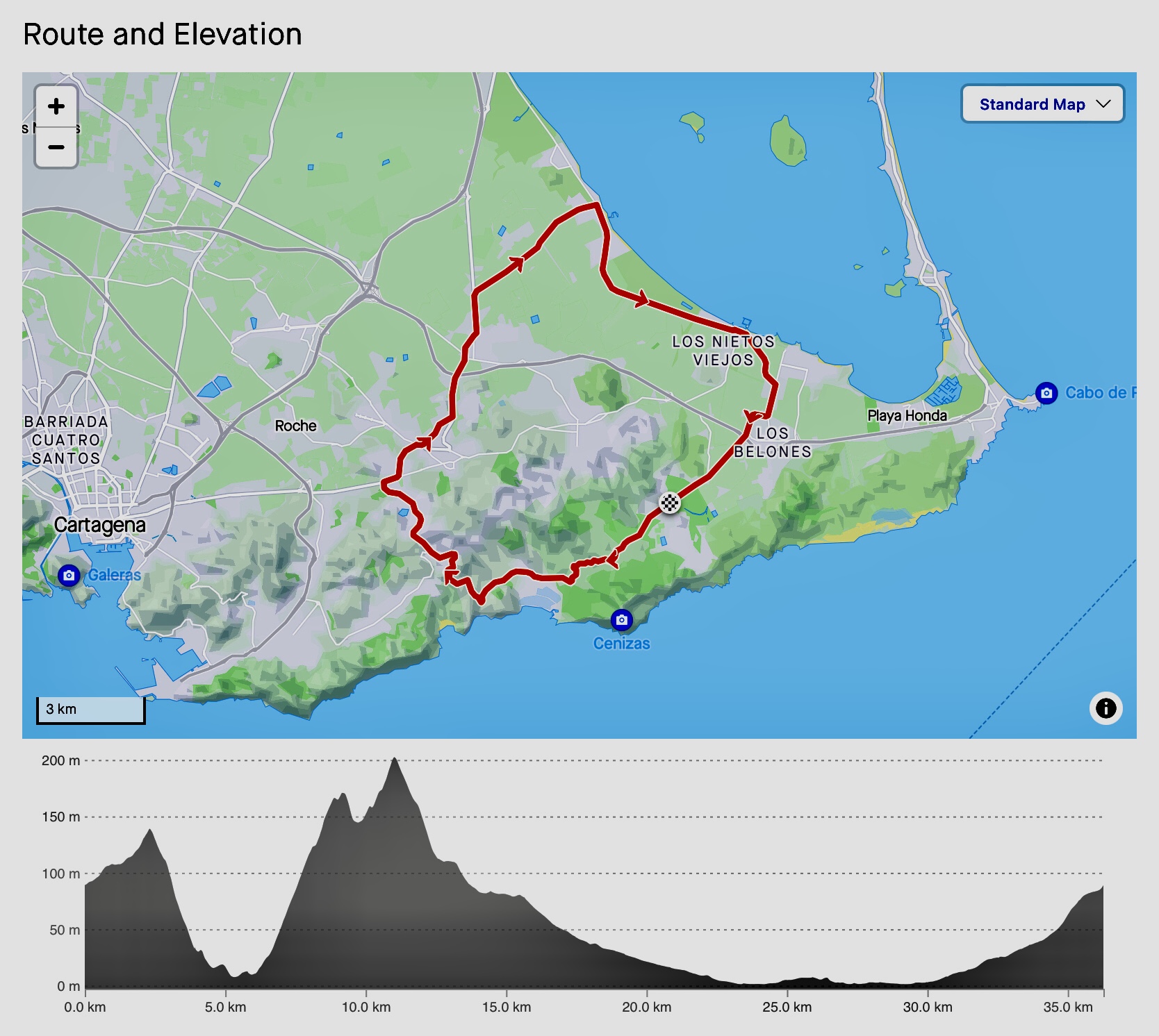 Km 0–5 – Warm-up Coastline: Gentle rollers along the Calblanque access road with sunrise over the Mar Menor if you set out early.